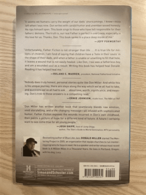 With honest humor and raw self-revelation, bestselling author Donald Miller tells the story of growing up without a father and openly talks about the issues that befall the fatherless generation. Raw and candid, Miller moves from self-pity and brokenness to hope and strength, highlighting a path for millions who are floundering in an age without positive male role models.