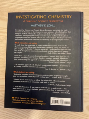 In its new second edition, Investigating Chemistry; A Forensic Science Perspective remains the only book that uses the inherently fascinating topics of crime and criminal investigations as a context for teaching the fundamental chemical concepts most often covered in an introductory nonmajors course. Covering all the standard topics, Matthew Johll capitalizes on the surge of interest in the scientific investigation of crime (as sparked by and other television shows), bringing together the theme of forensic science and the fundamentals of chemistry in ways that are effective and accessible for students. This edition features refined explanations of the chemical concepts, which are the core of the book, as well as a more thoroughly integrated forensic theme, updated features, and an expanded media/supplements package.