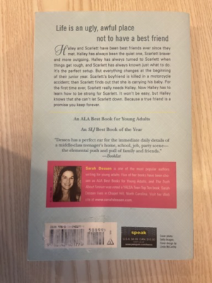 Halley has always followed in the wake of her best friend, Scarlett. But when Scarlett learns that her boyfriend has been killed in a motorcycle accident, and that she’s carrying his baby, she’s devastated. For the first time ever, Scarlett really needs Halley. Though their friendship may be tested by the strain, like a true friendship, it will endure.